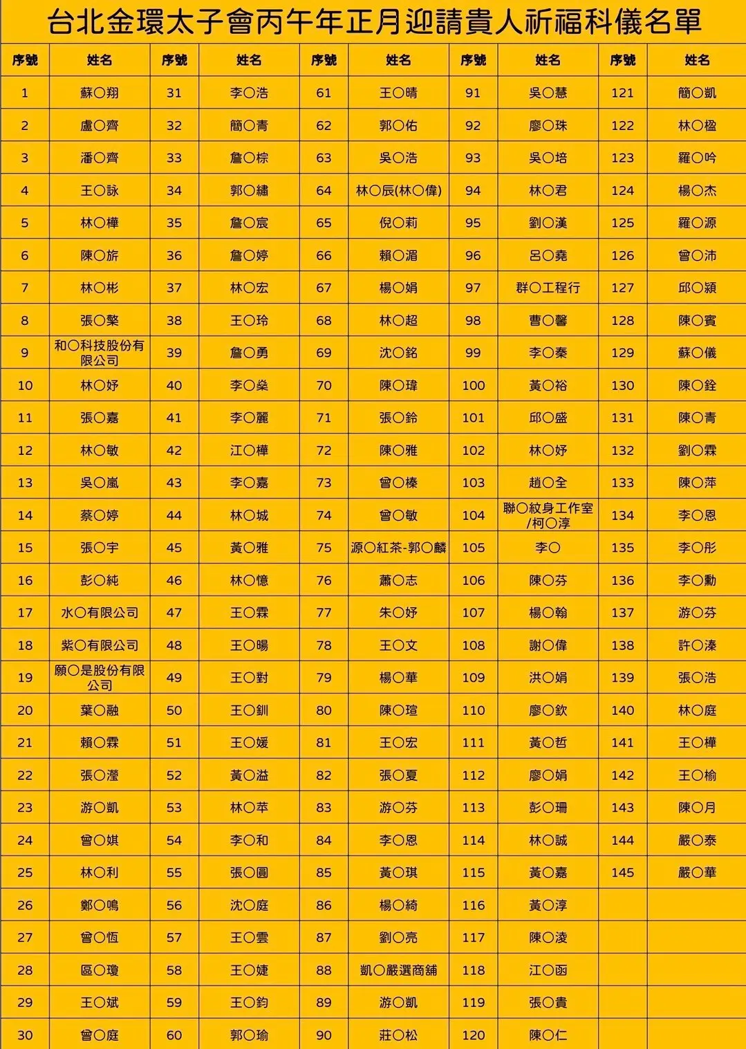 丙午年正月求請貴人接引祿馬扶持祈福消災名單
